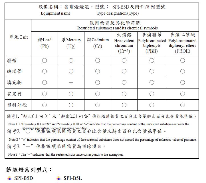 RoHS限用物質含有情況標示SPI-B5D及其系列型式