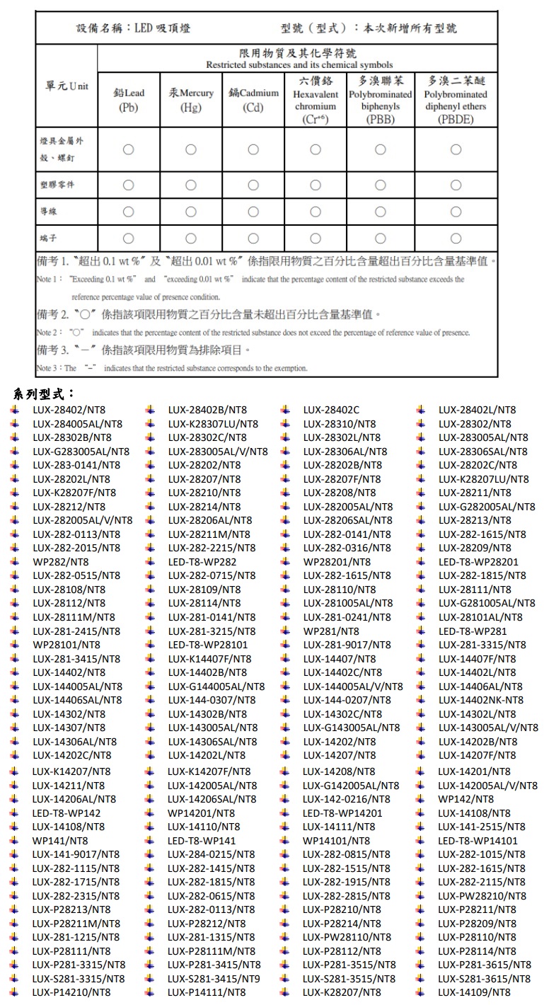 RoHS限用物質含有情況標示LUX-284005AL/NT8及其系列型式