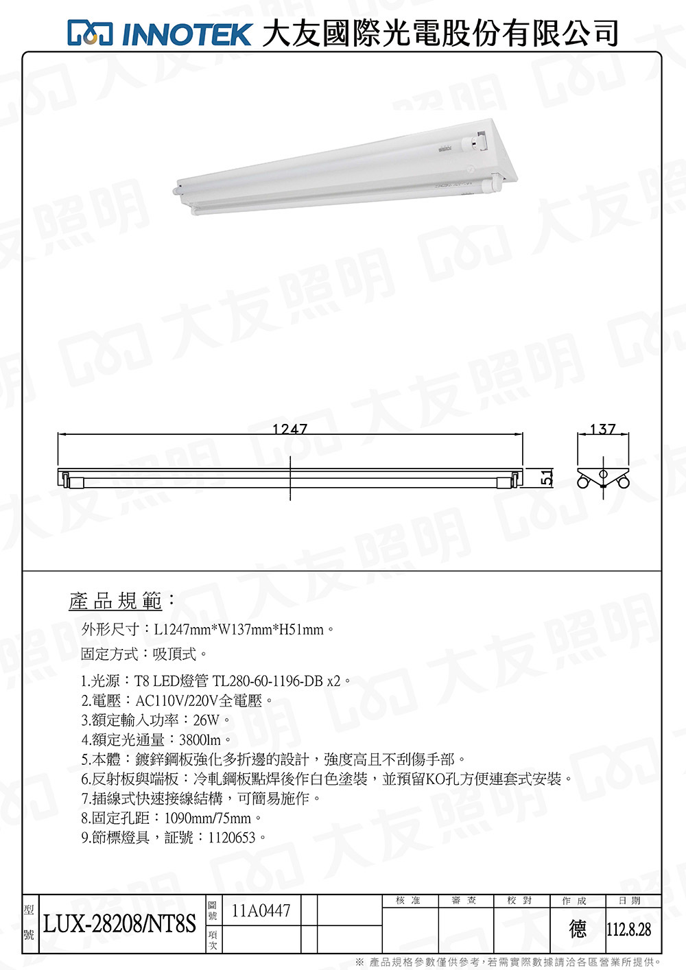 本體:鍍鋅鋼板製成 / 反射板與端板:冷軋鋼板點焊後粉體烤漆處理