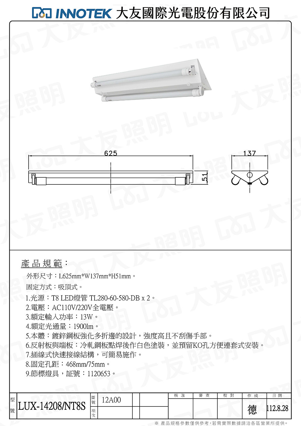 本體:鍍鋅鋼板 / 反射板與端板:冷軋鋼板點焊後粉體烤漆處理