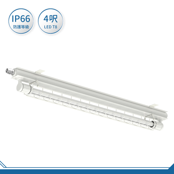 本體:鋁合金製成粉體烤漆處理。燈管護罩:強化玻璃管製成。燈具護網:鍍鋅鋼材耐腐蝕烤漆護網。