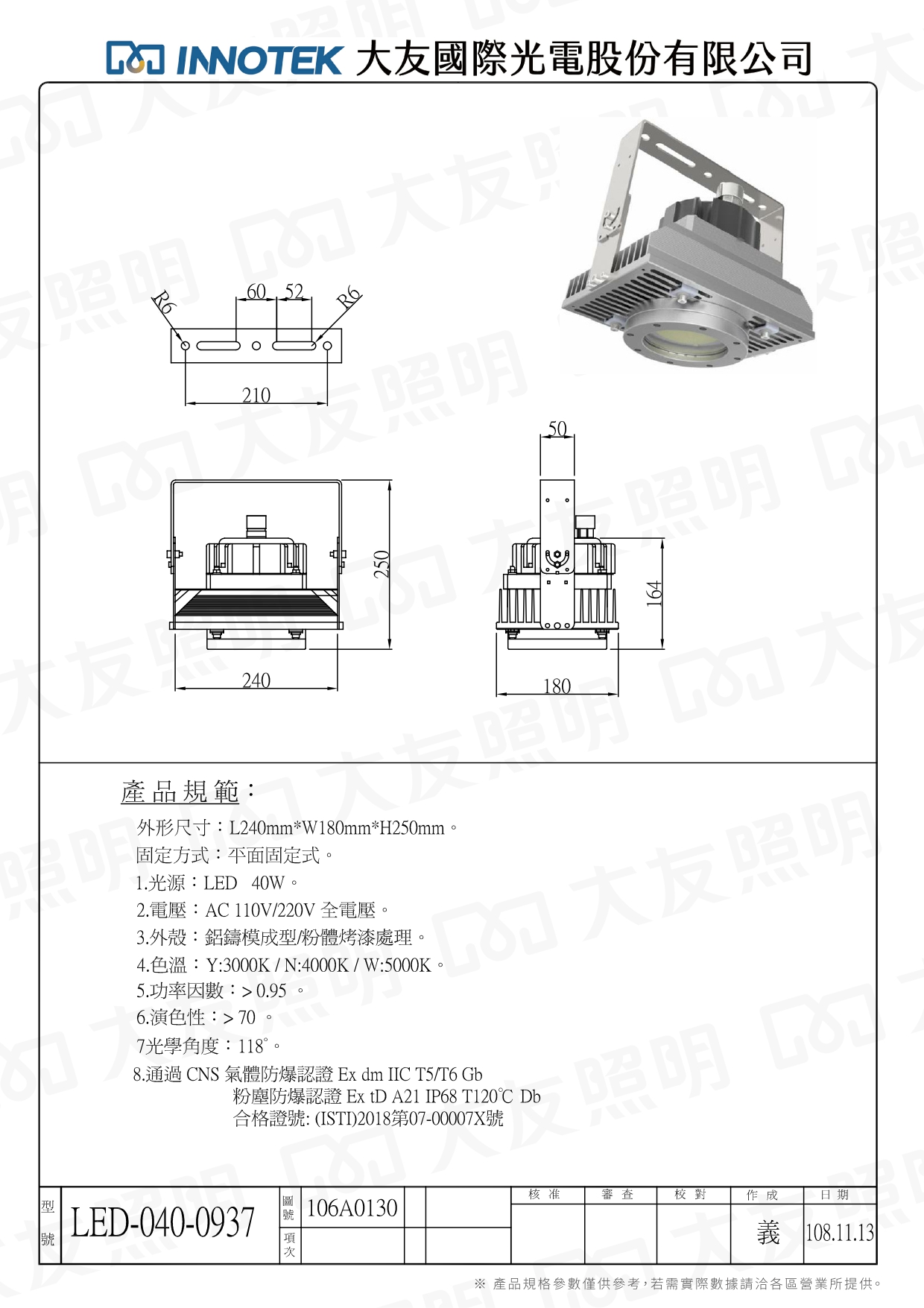 ˙電源多重保護裝置設計,安全,壽命長˙COB封裝,專利快速導熱系統,散熱快、高光效、低光衰˙客製化不鏽鋼轉接頭,可搭配 1/2~3/4 NPT內外牙防爆接頭˙瞬間啟動,無閃爍,省電,耐久性˙燈具鋁合金及不鏽鋼設計,耐腐蝕。