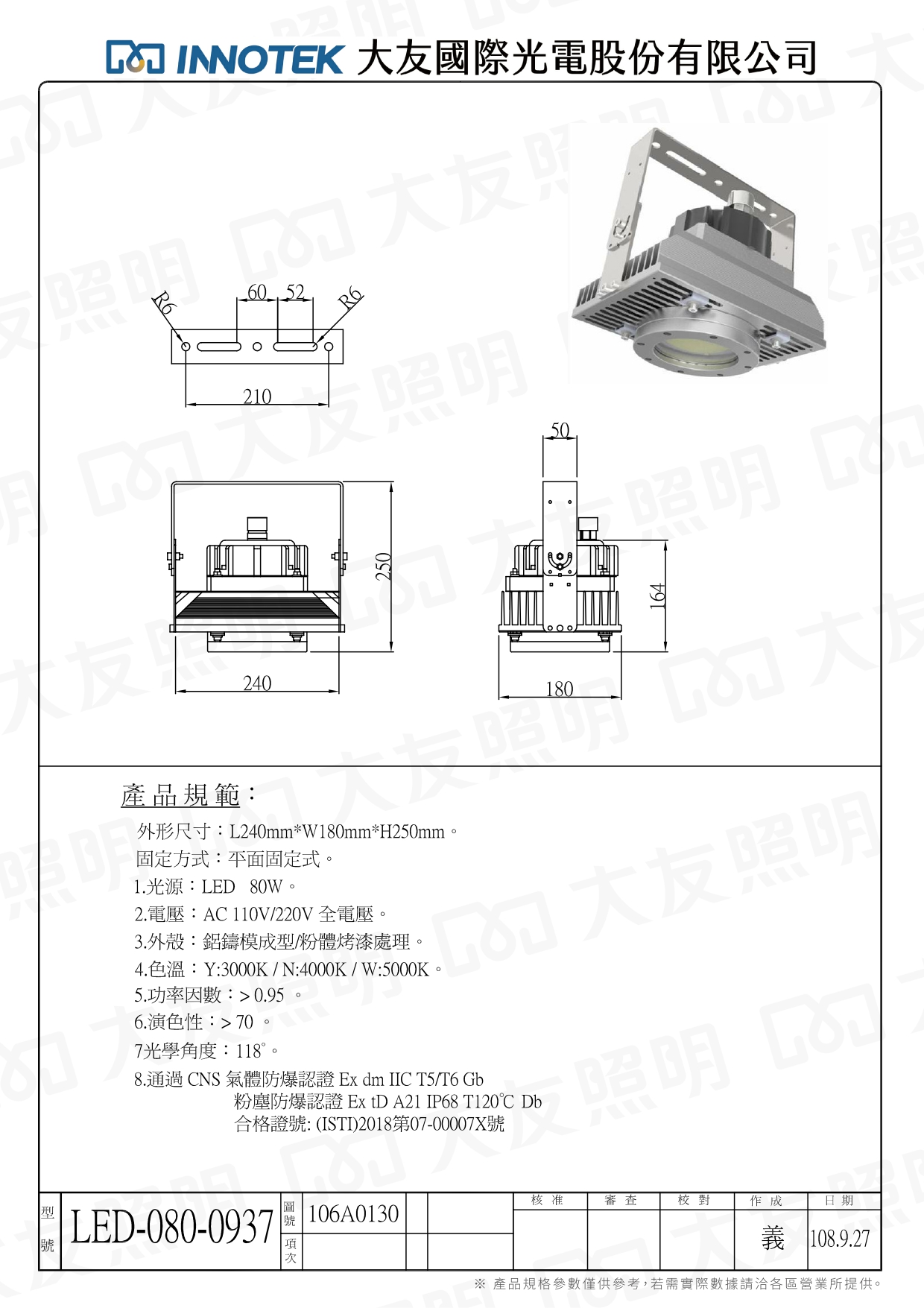 ˙電源多重保護裝置設計,安全,壽命長˙COB封裝,專利快速導熱系統,散熱快、高光效、低光衰˙客製化不鏽鋼轉接頭,可搭配 1/2~3/4 NPT內外牙防爆接頭˙瞬間啟動,無閃爍,省電,耐久性˙燈具鋁合金及不鏽鋼設計,耐腐蝕。