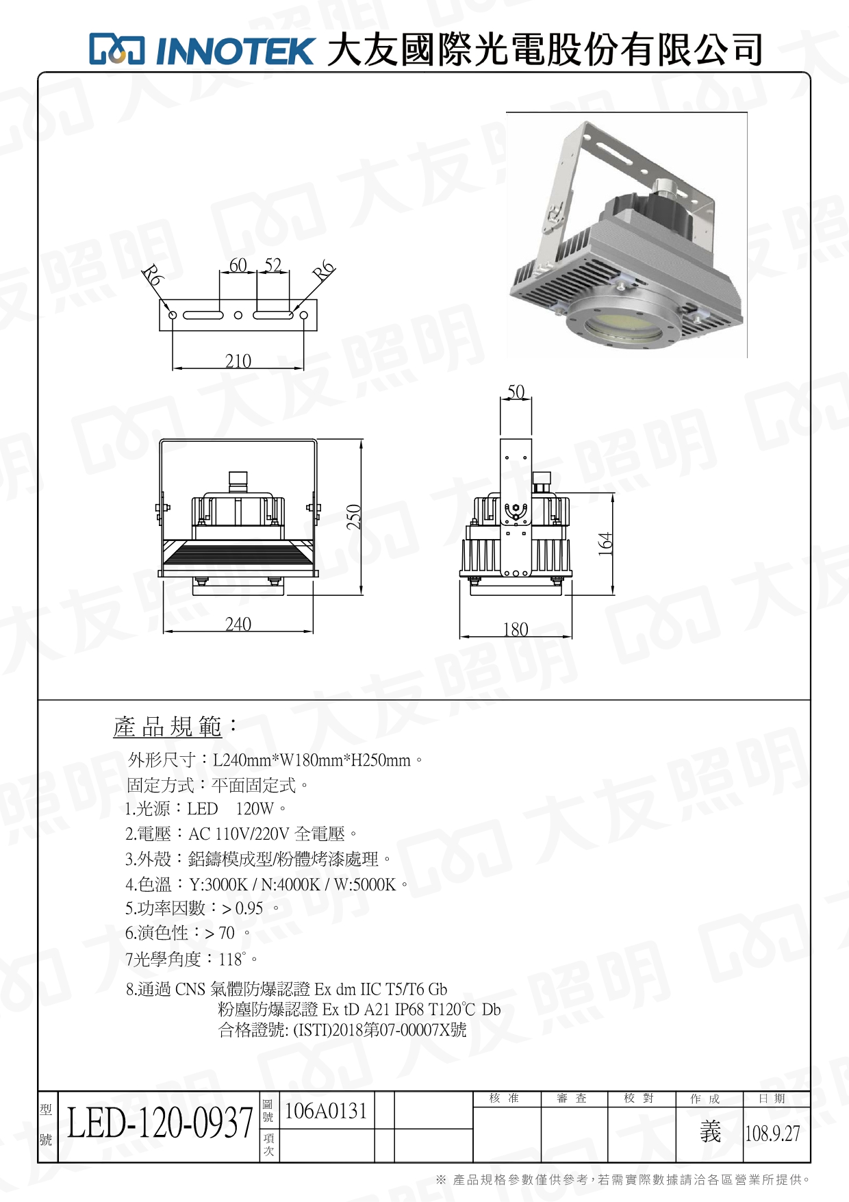 ˙電源多重保護裝置設計,安全,壽命長˙COB封裝,專利快速導熱系統,散熱快、高光效、低光衰˙客製化不鏽鋼轉接頭,可搭配 1/2~3/4 NPT內外牙防爆接頭˙瞬間啟動,無閃爍,省電,耐久性˙燈具鋁合金及不鏽鋼設計,耐腐蝕。
